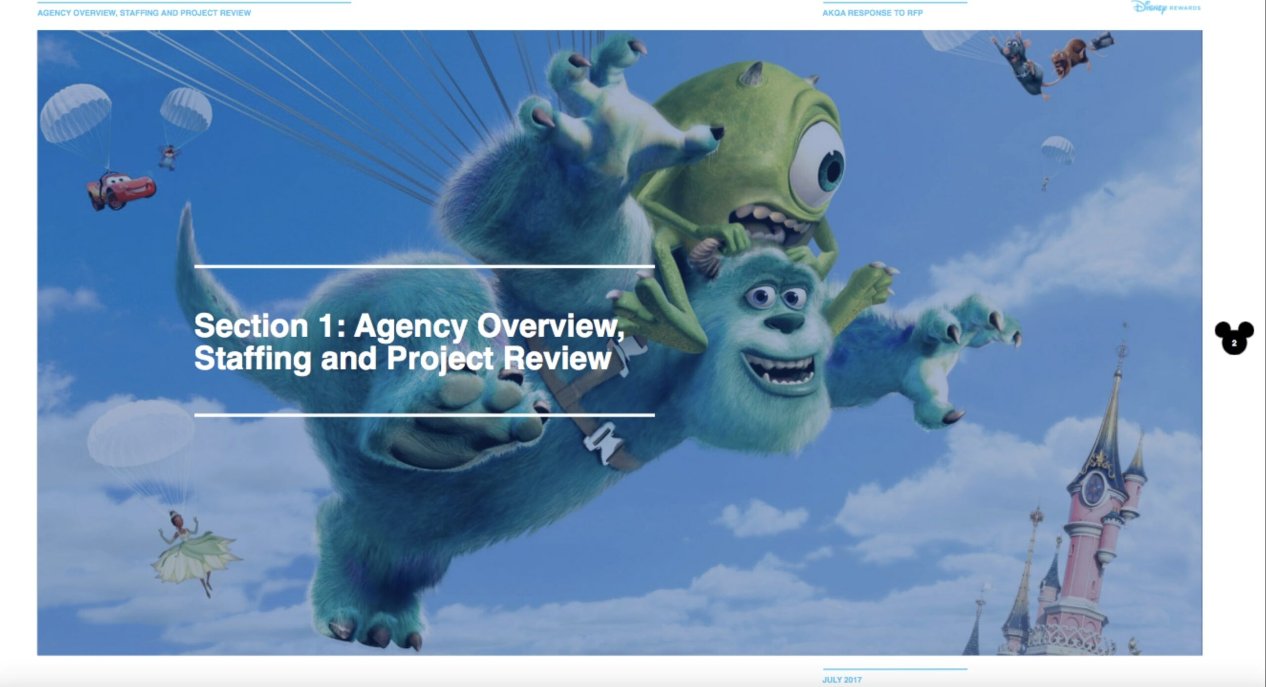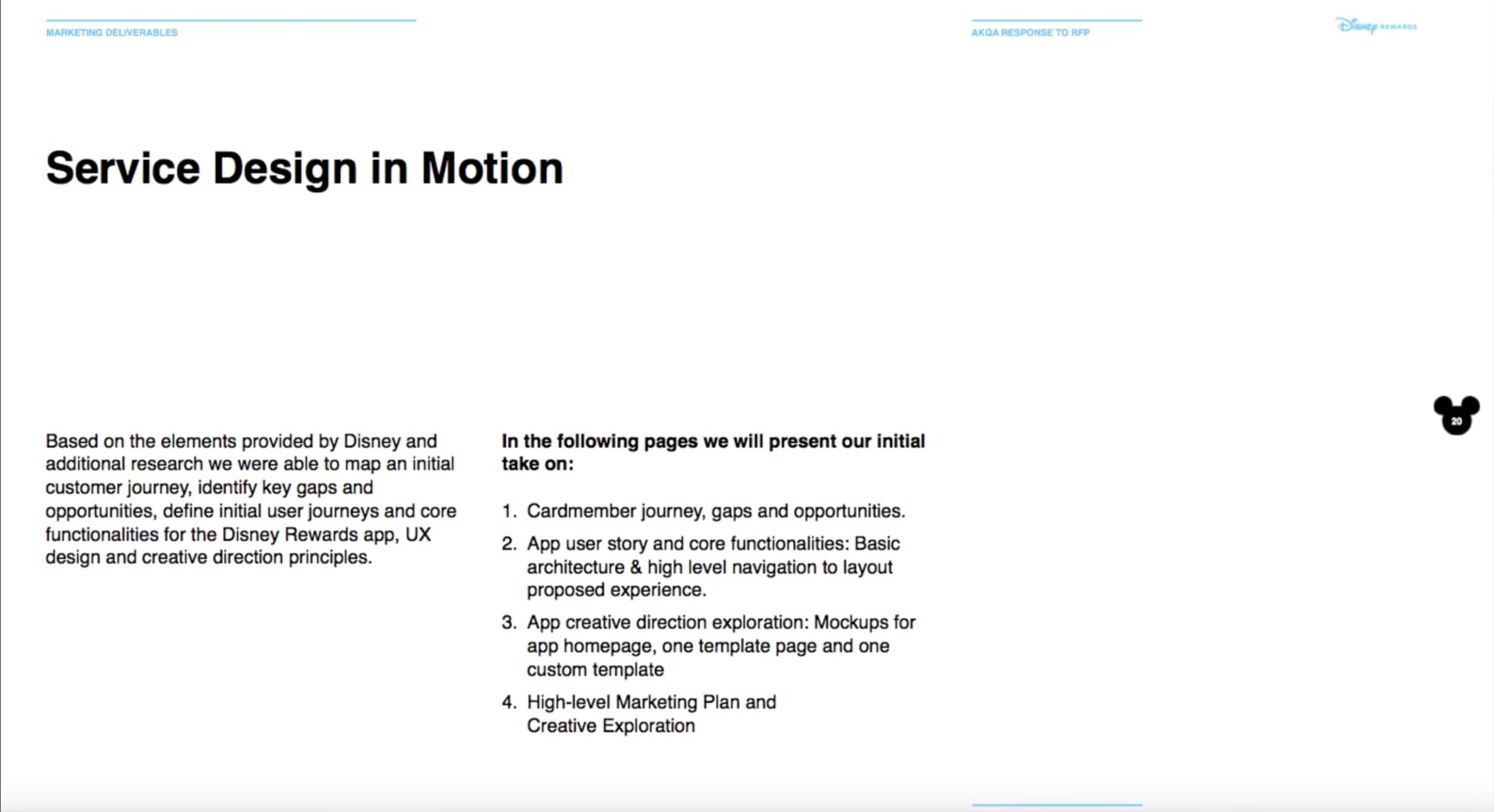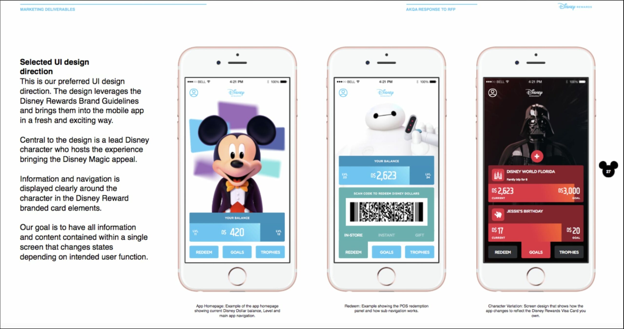 Challenge: Create a pitch deck detailing the digital creative, mobile app experience, development and management for Disney.