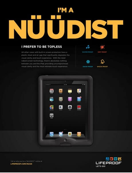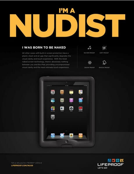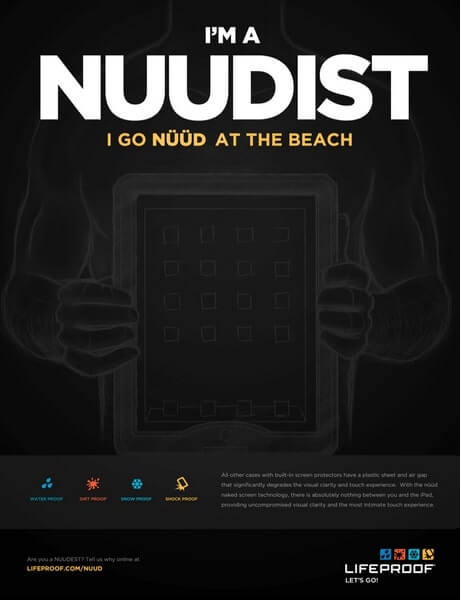 Challenge: LifeProof invited BASIC to pitch for their 2013 advertising rights and develop campaign ideas that would showcase the new Nuud iPad cover.