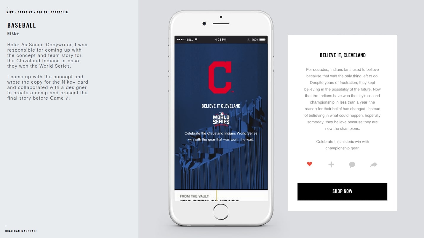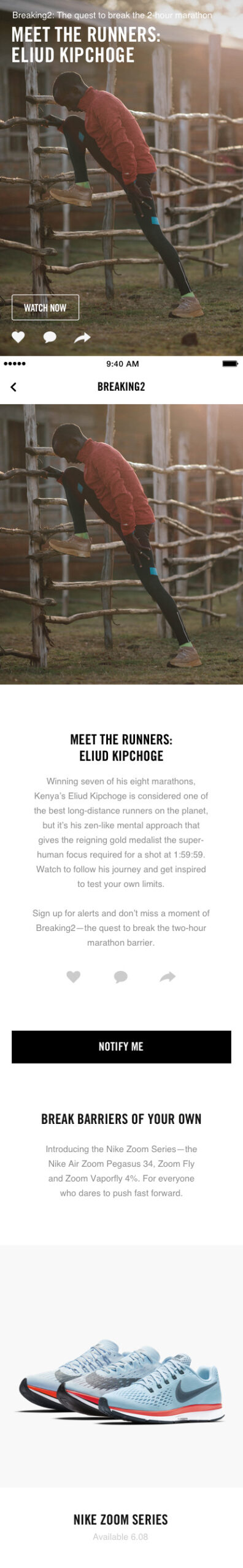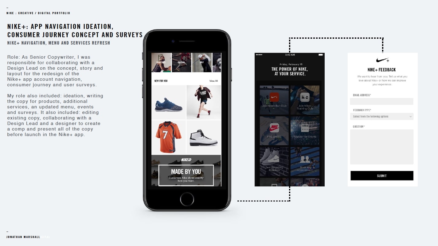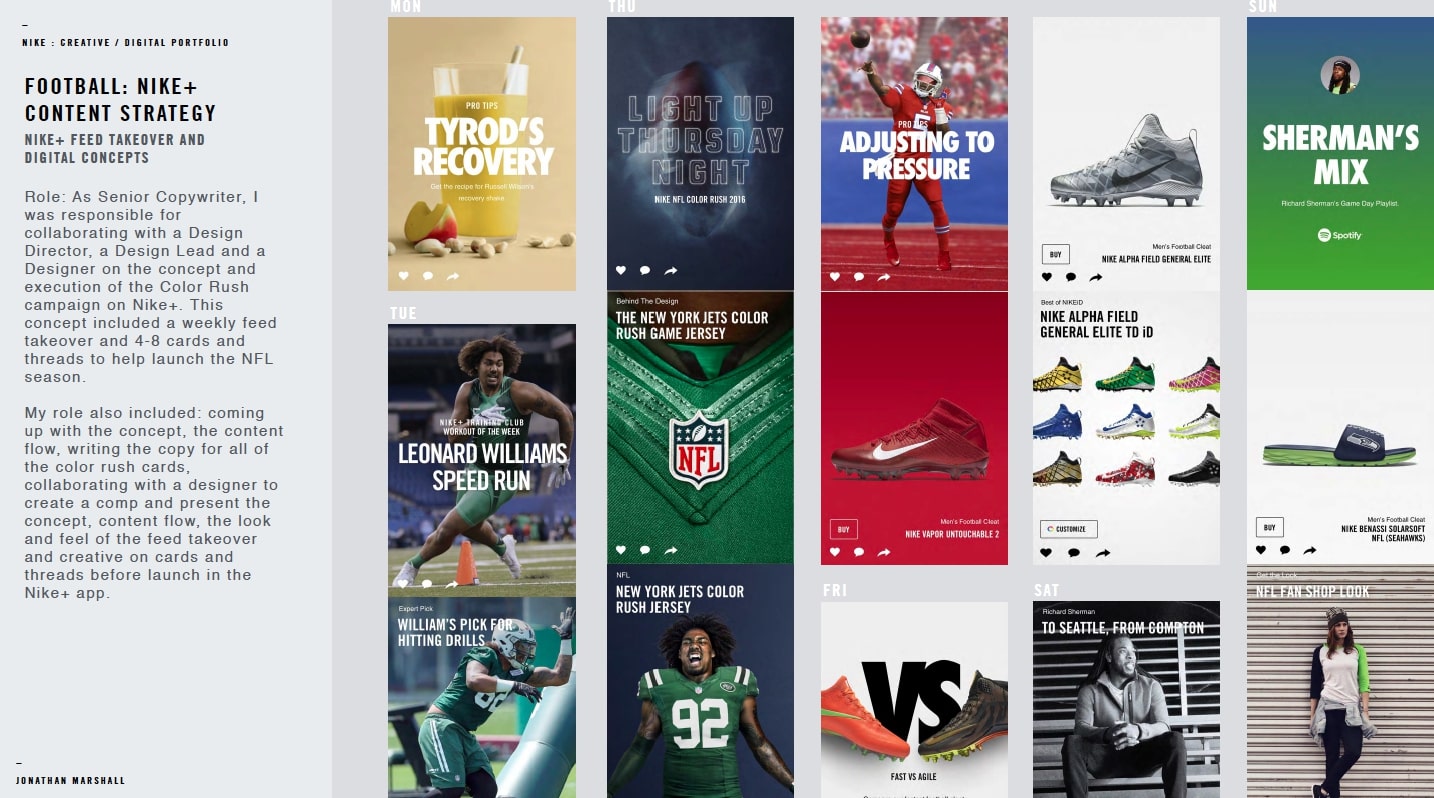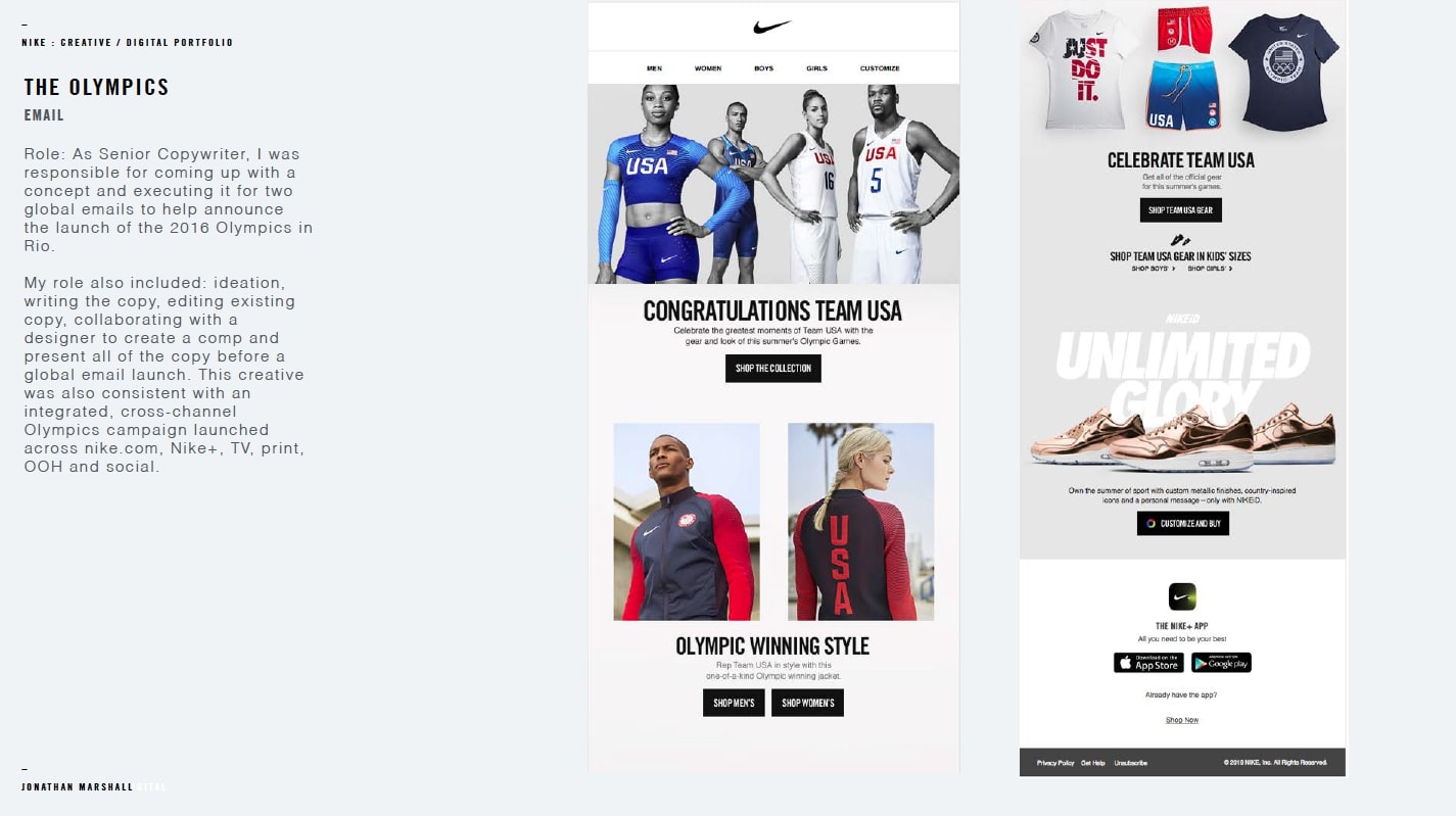Role: As Senior Copywriter at/on Nike, I was responsible for everything from digital copy, strategy and ideas to scripts, creative direction at photo, video shoots and editorial content.