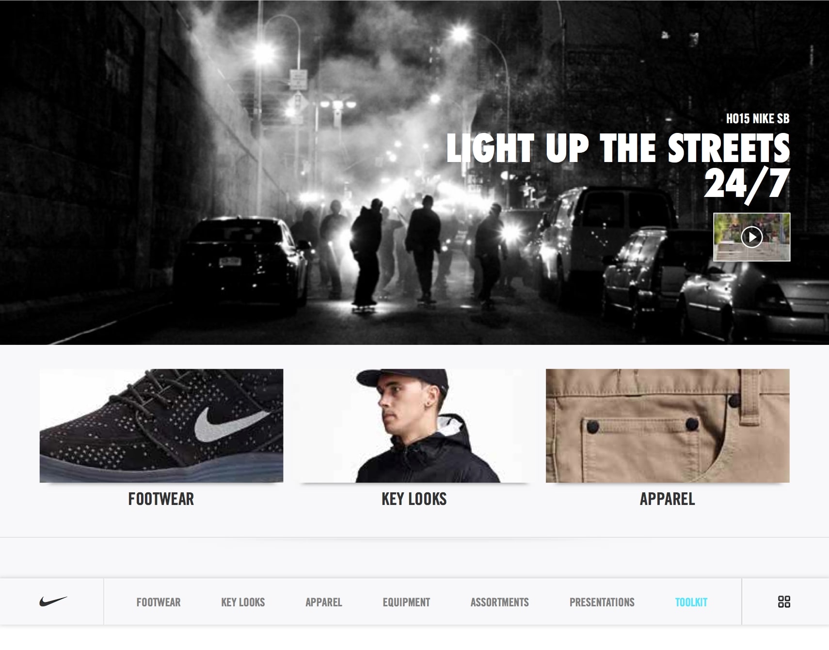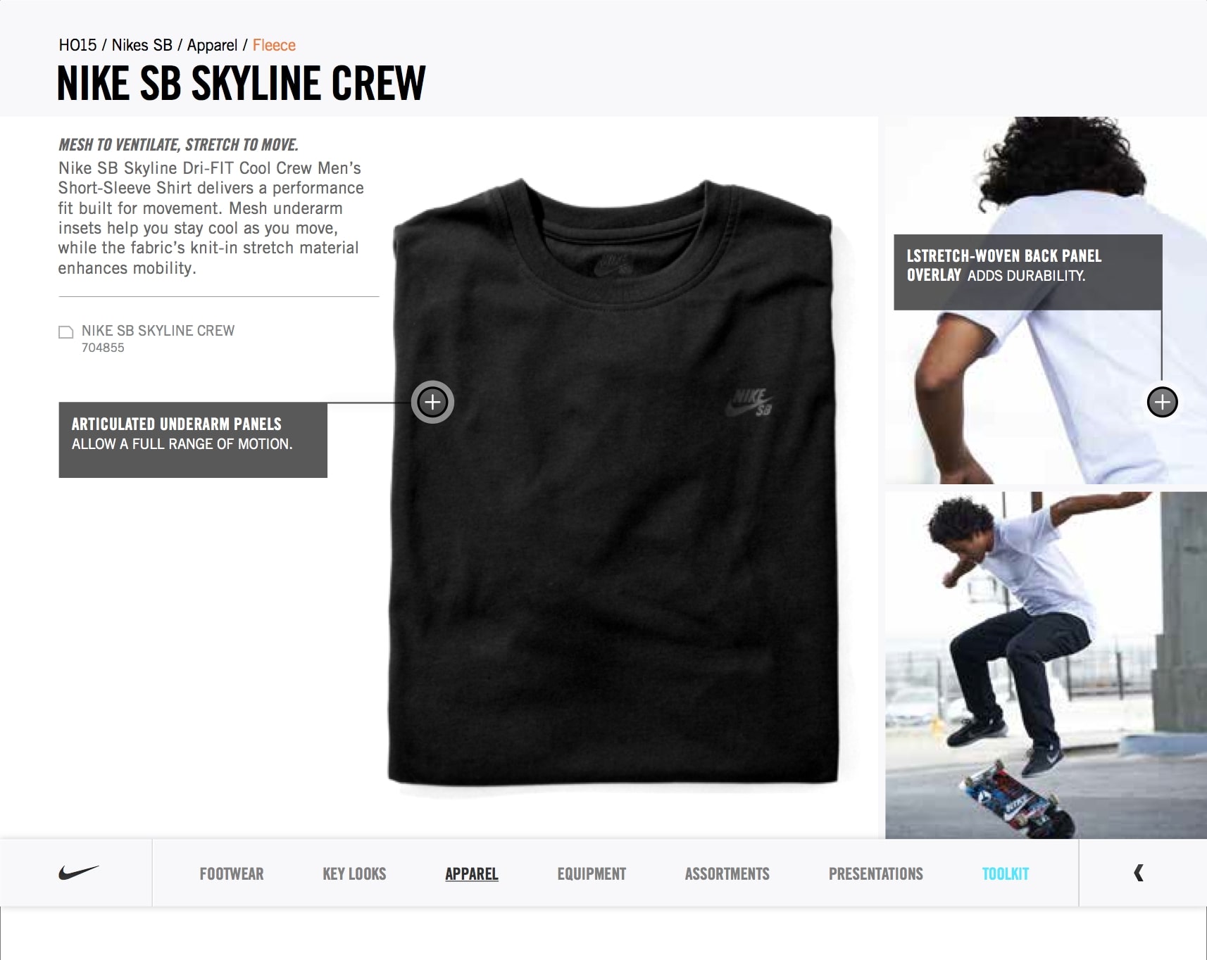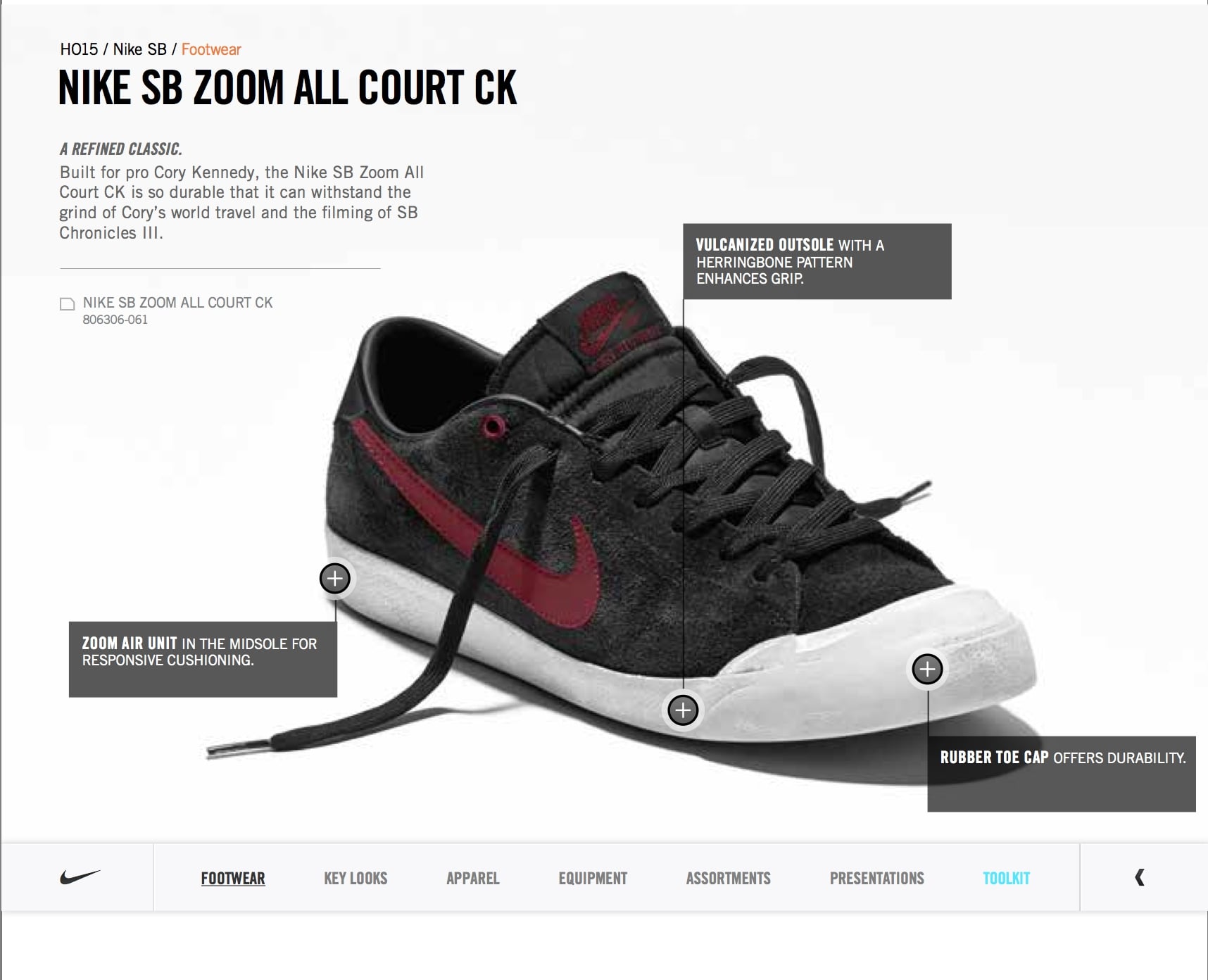 Project: Nike Techsheet copy, Nike Sales App copy, and both Nike Tennis and Nike SB-specific .com landing pages, seasonal category stories and branded product copy.