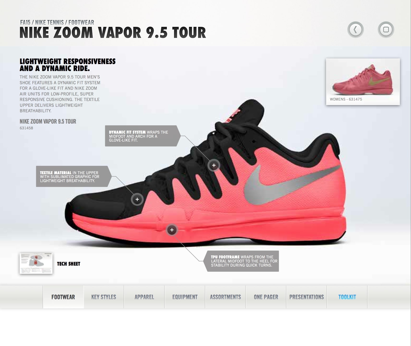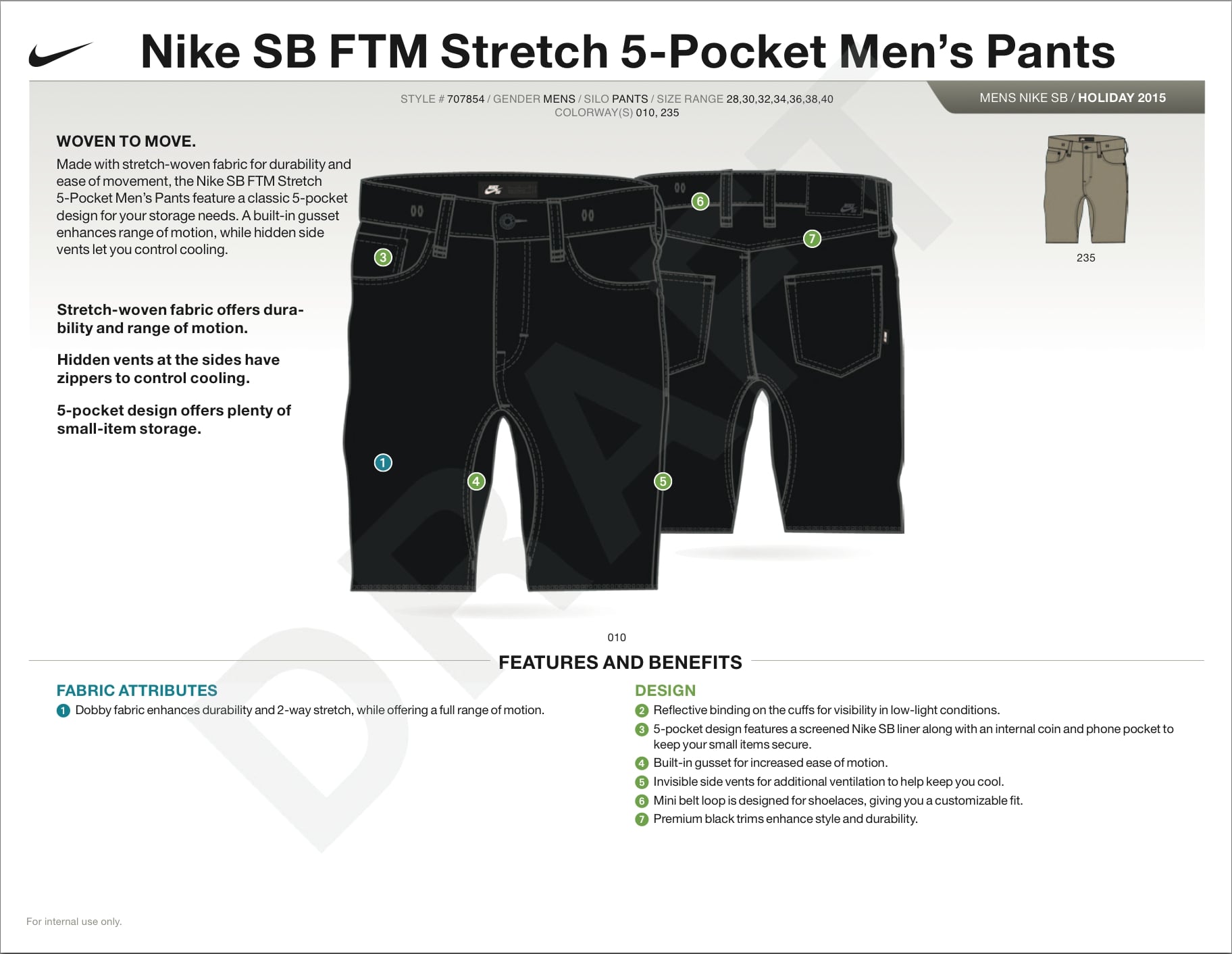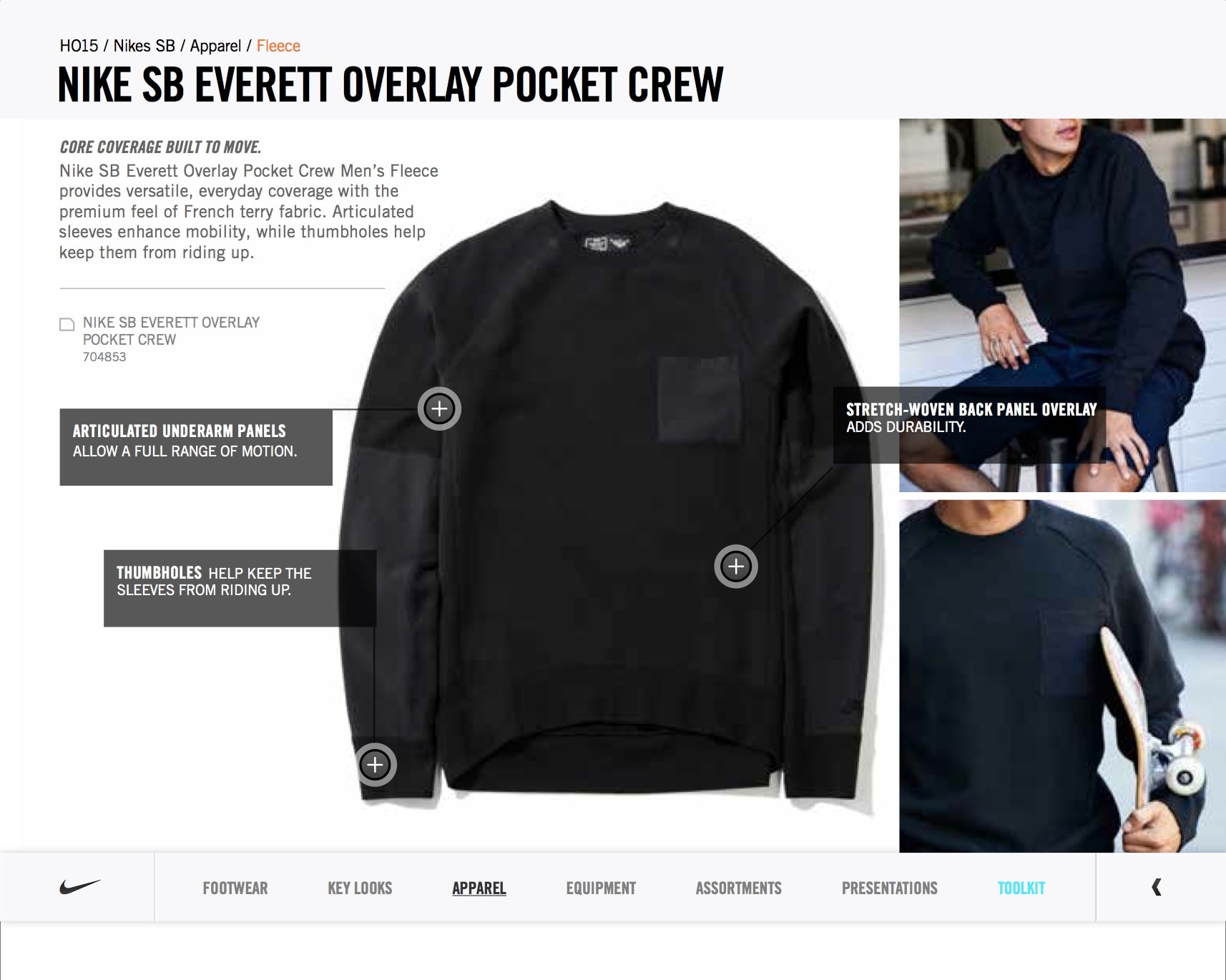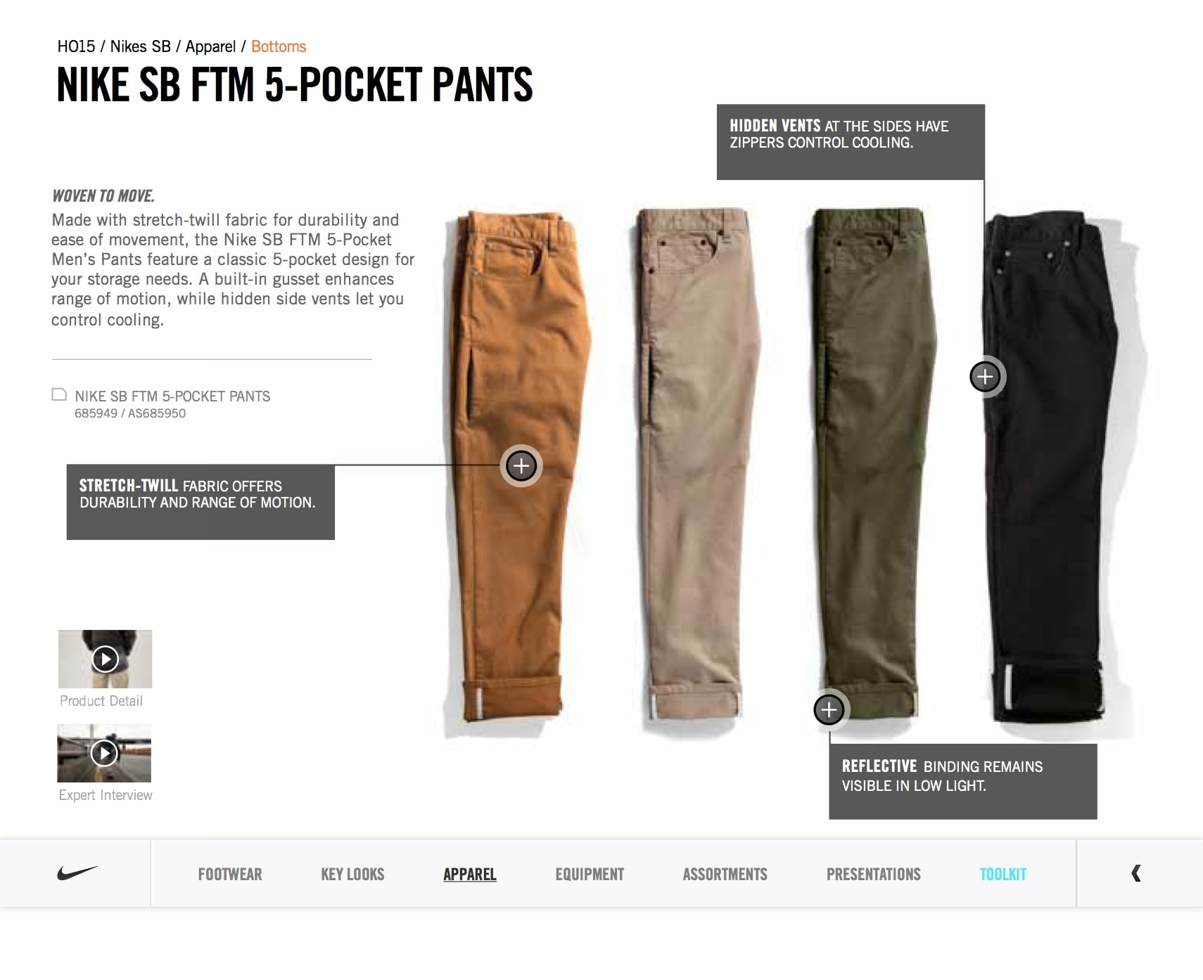 Project: Nike Techsheet copy, Nike Sales App copy, and both Nike Tennis and Nike SB-specific .com landing pages, seasonal category stories and branded product copy.