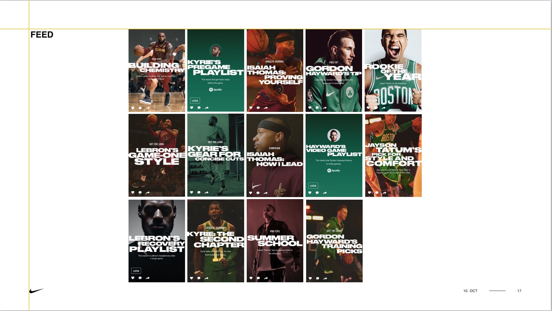 Project: Nike x NBA FA18 GameDay Concept, App Feed Exploration, Content Strategy.