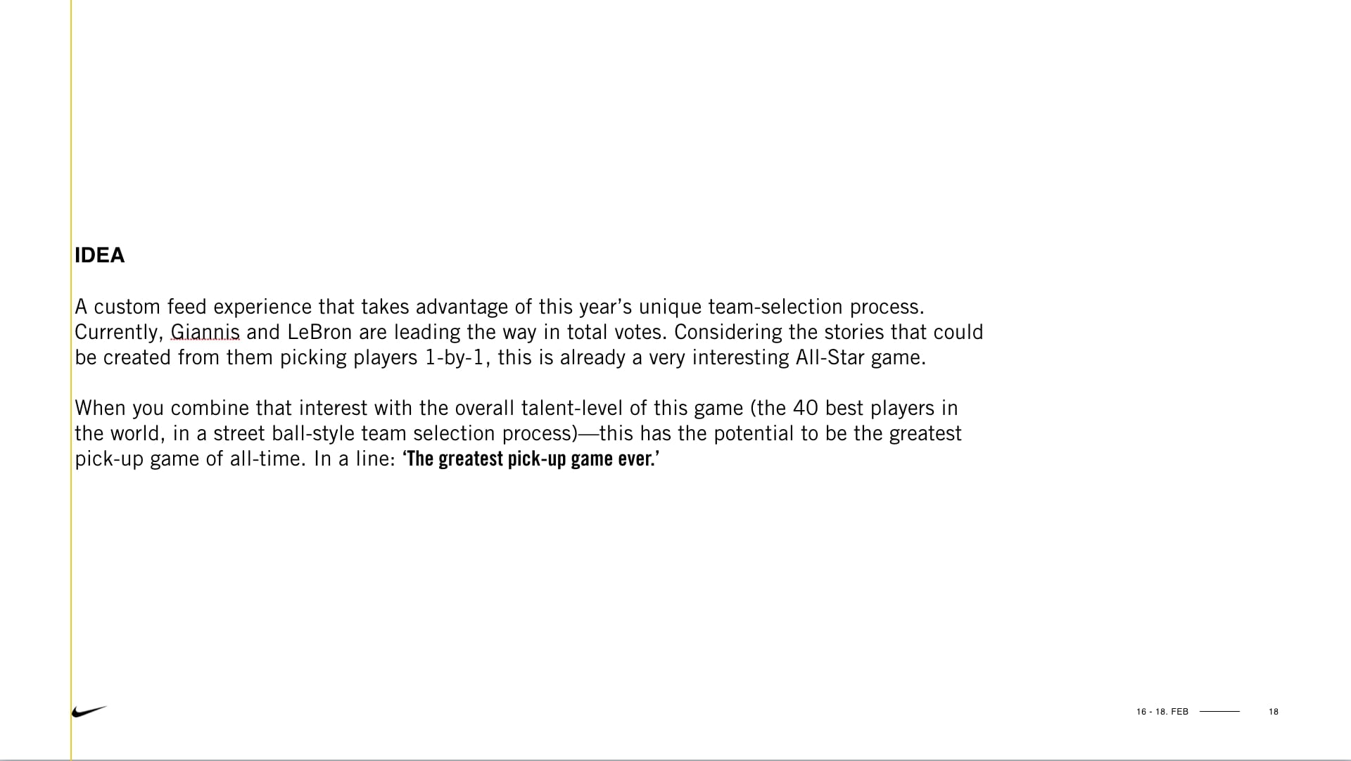 Project: Nike x NBA SP18 All-Star Game App Concept, App Feed Exploration and Content Strategy.