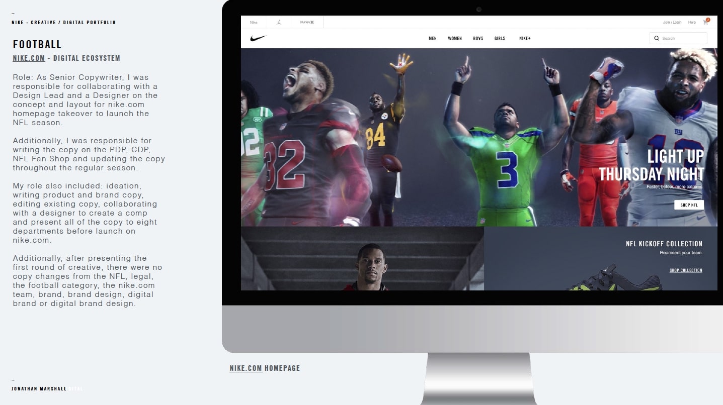 Project: Nike.com Homepage Takeover for the 2016 NFL season launch.