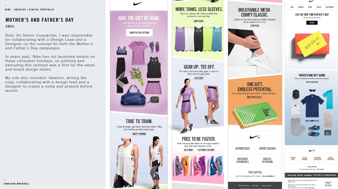 Project: Nike North America emails for Mother’s and Father’s Day.
