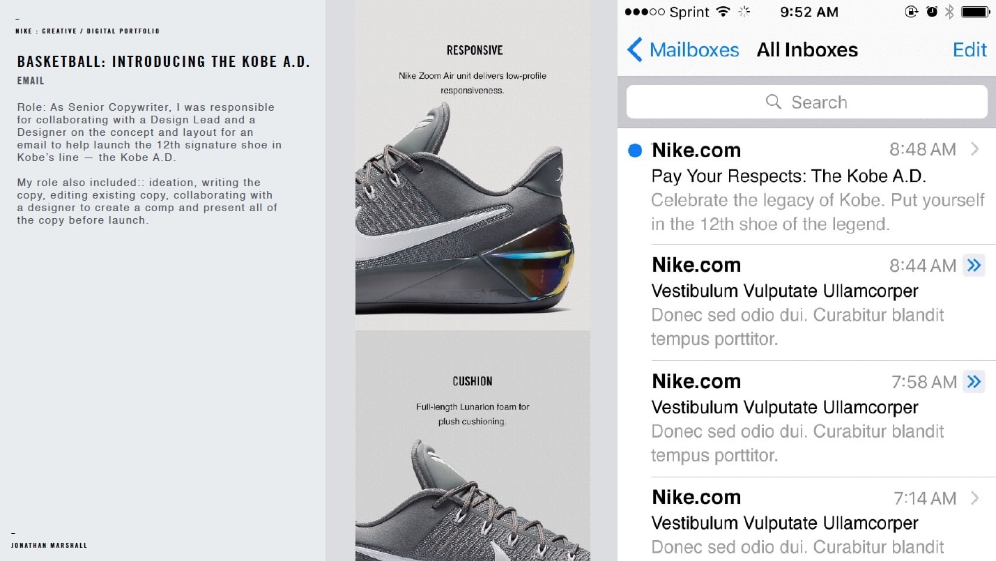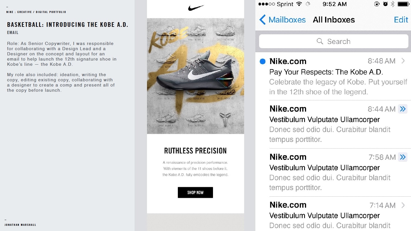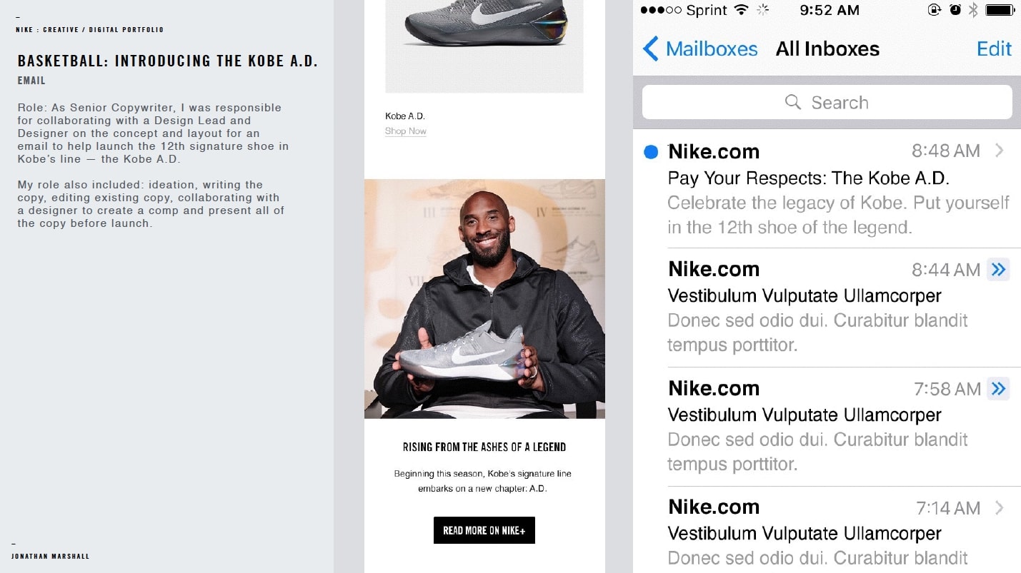 Project: Nike global email (specifically the Subject Line and Preheader) for the Kobe A.D.