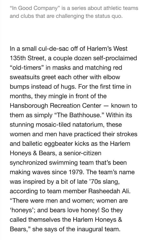Role: I was responsible for ideation, new story angles, longer-form, editorial-style copywriting and copyediting for dozens of stories about amateur athletes all over the world. These stories helped raise awareness of some of the lesser-known social, racial, political, gender, economic, environmental and age-related issues, adversities and considerations that many athletes still face in sports today.