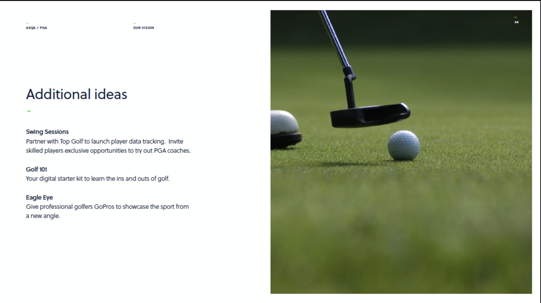 Challenge: AKQA was asked to pitch digital experience and mobile app ideas for the most recognizable golf brand in the world.