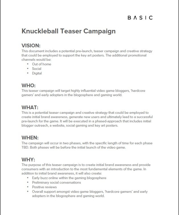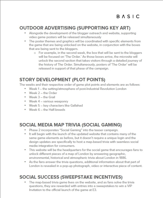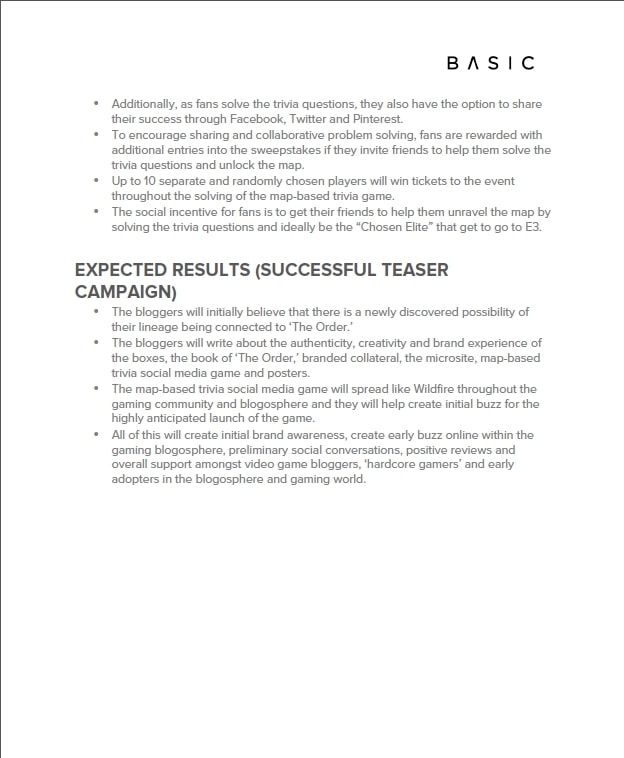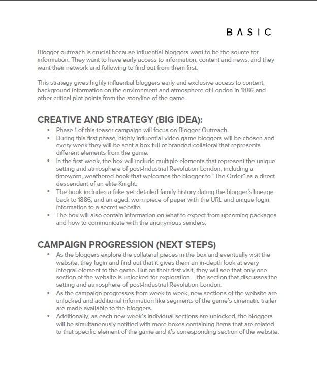 This strategy and marketing campaign included blogger outreach that would give influential bloggers in the gaming community access to exclusive online content, posters, a microsite, social media prizes and more. The campaign was also supported by the development of branded, marketing collateral and ambient advertising efforts.