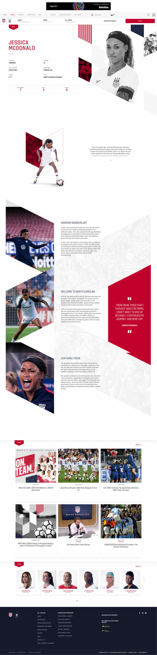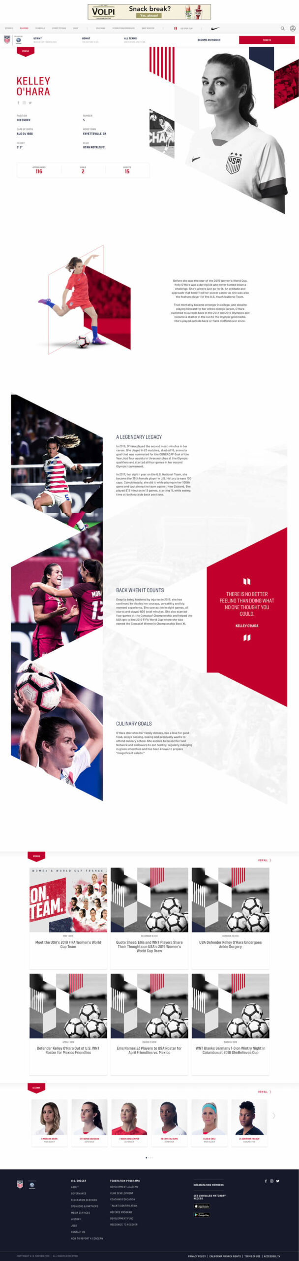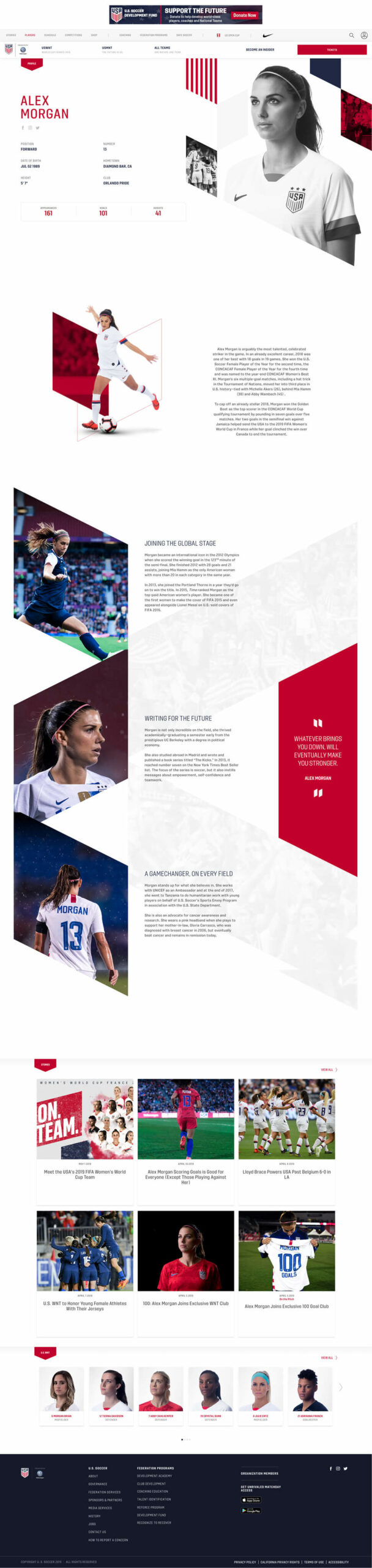 Role: As Senior Copywriter on U.S. Soccer, I was responsible for WWC tagline explorations, writing and editing landing page copy for 30 player profile pages and providing copy direction for a template that could be used for future player profile pages.